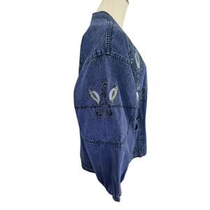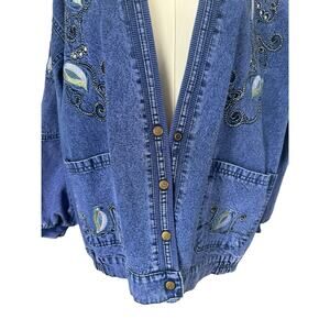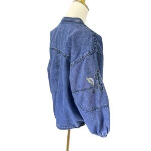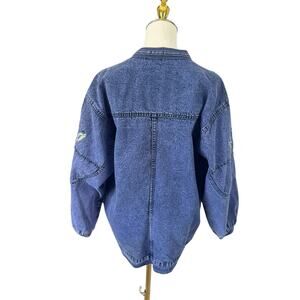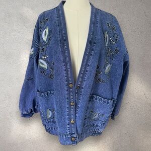 Vintage Embroidered Denim Jean Jacket Boho Chic Whimsical Artisnal Streetwear