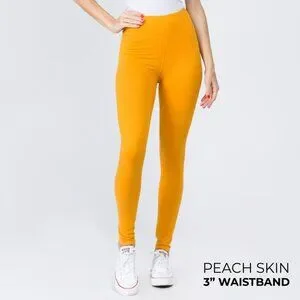 ❤️NWT BOUTIQUE MUSTARD COLOR Women's 3" Waistband Solid Peach Skin Leggings
