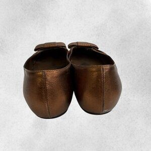Pleated Bronze Salvatore Ferragamo Flats with Bow