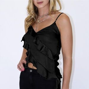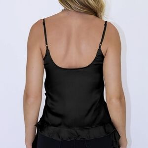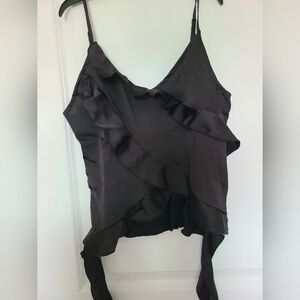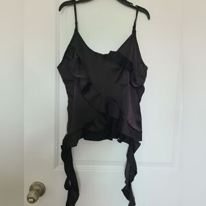 NWOT Womens Silk Spaghetti Strap Tank Tops Ruffle Going Out V-Neck Camisole, S