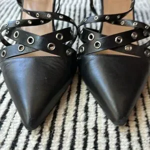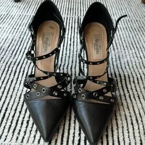 Move over Rockstuds! These super cute Valentino heels with silver grommets will have your friends wondering where you bought them! Definitely have some wear to them because they have been a favorite of mine. Time to finally share them. Straps adjustable on both sides. Includes shoe bag.