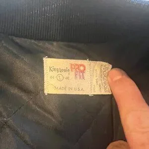 On a Union Made King Louie Pro Fit tag. It is worth owning the jacket just for the tag.