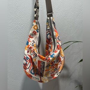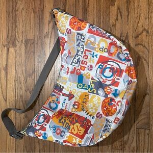 Rare 2008 multicolor printed extra large crescent sling bag with adjustable strap. Made of ripstop nylon. Wide strap also features metal buckle with full release. Perfect inside and out! No discolorations, stains, rips or tears.