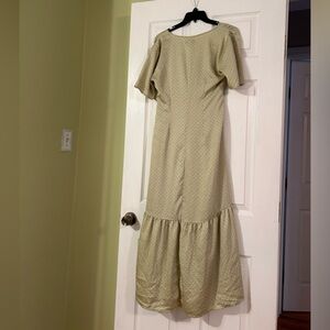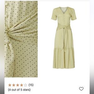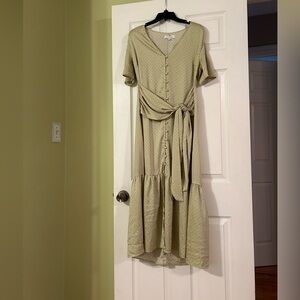 Gorgeous polka dot dress with buttons down front and ties at the waist. In excellent used condition, so pretty on!