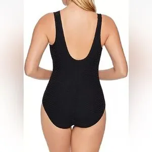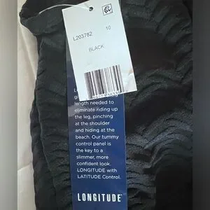 Longitude Half Moon Mesh Torso Tummy Control Swimsuit Size 10 Black NWT