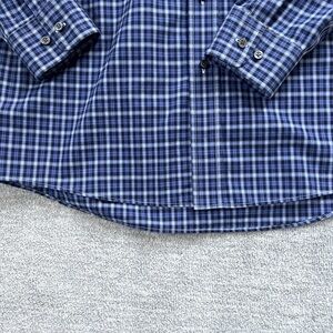 This Jos. A. Bank traveler Buttondown is in excellent condition! It is a blue plaid with a front pocket. It is 100% cotton, soft and comfortable. This is a nice looking shirt!