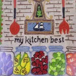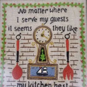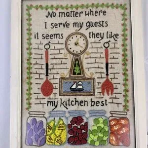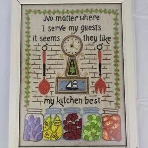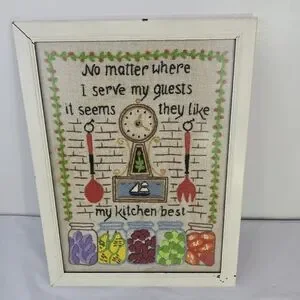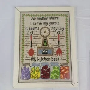 Vintage Framed Crewel Wall Art Kitchen Retro Cottage Farmhouse