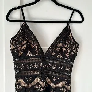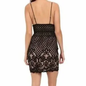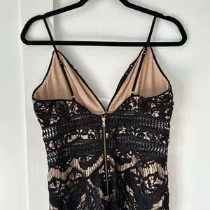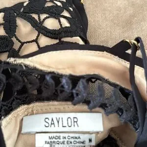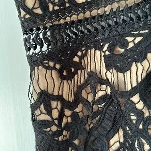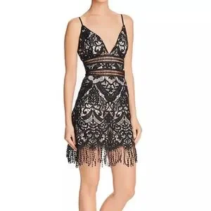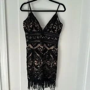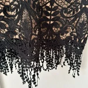 Saylor Fringe Embroidery Black Lace Dress Size M