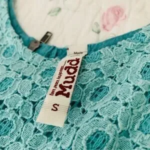 Mudd | lace short sleeve dress size small with see-through midriff tiffany blue
