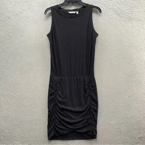 Athleta Westwood Bodycon Dress Black Tiered Waist Ruched Soft Stretch Women’s Size XS