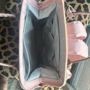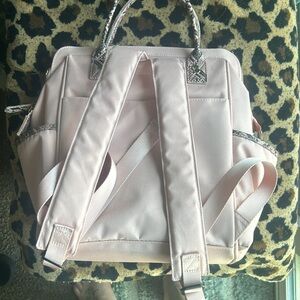 Dusky pink small backpack. Many pockets with zipper close. 13 x 13