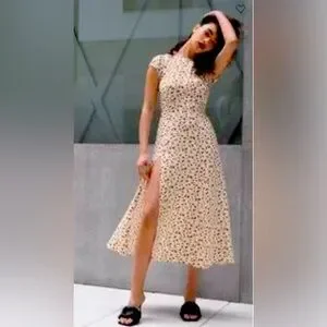 Super cute backless dress with small rose pattern. Too small for me. Never worn Covid online shopping spree purchase.