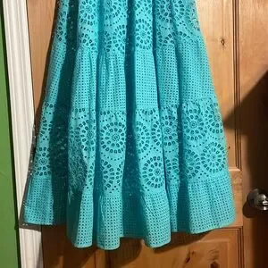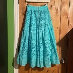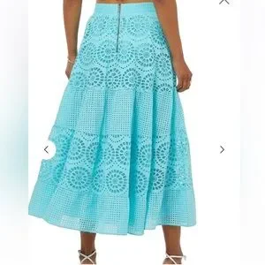 ALICE + OLIVIA Melony Sky Blue Eyelet Trim Lined Midi Skirt $560 EUC 0