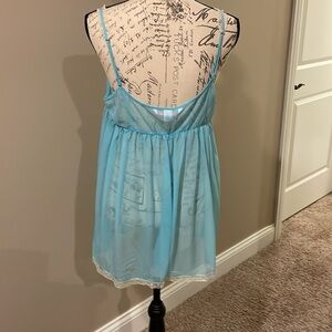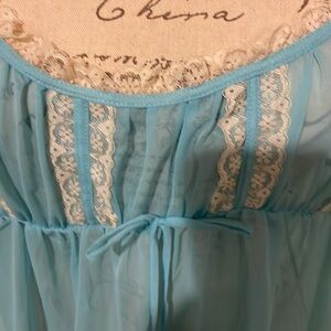 NWOT Vintage Victoria’s Secret babydoll chemise. Size XL. Light blue sheer material with lace accents. Adjustable straps. Smoke feee/pet free
