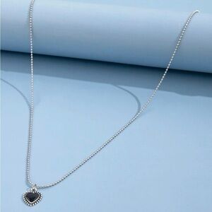 On hold// Black Heart Silver Chain Necklace