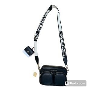 NWT MICHAEL KORS Jet Set Medium Leather Crossbody w/ Case for Apple AirPods Pro