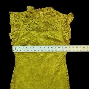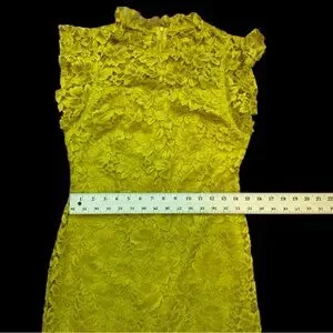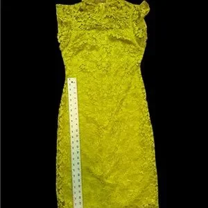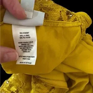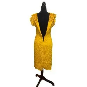 Gorgeous golden yellow with floral lace overlay, fully lined.