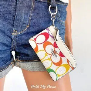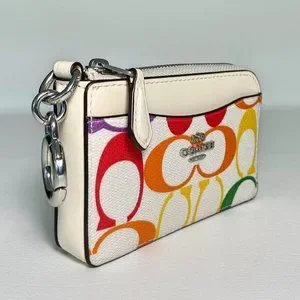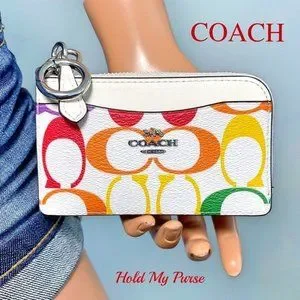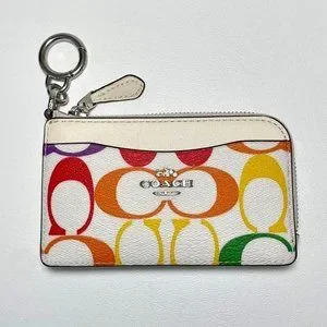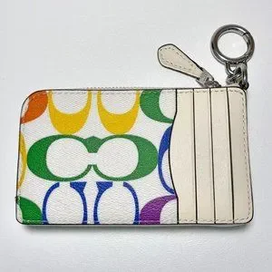 Coach Rainbow Signature Card Case ID Wallet Keychain Bag Charm NWT