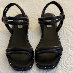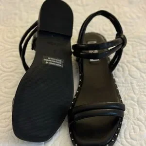 Stunning black flat Steve Madden sandals that will be show stopping with any outfit!