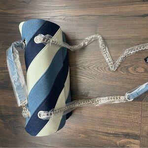 Beautiful Akira denim open compartments snap closure patchwork shoulder/crossbody chain handbag, thanks.