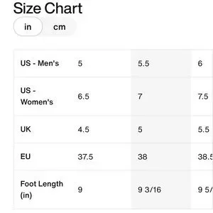 These are a men's size 5, a women's size 6.5 (I'm a woman and a size 6.5/7 and these fit me well)