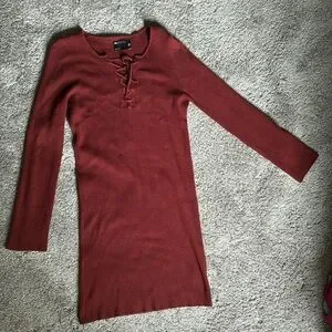 Brand new without tags! Only tried on, never worn. Deep rust red mini sweater dress. Knitted stretchy soft material. Long sleeves.