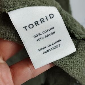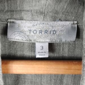 Torrid 3 women's light weight jacket. Open front. Drawstring waist. Chest and bottom pockets. Roll tab sleeves.