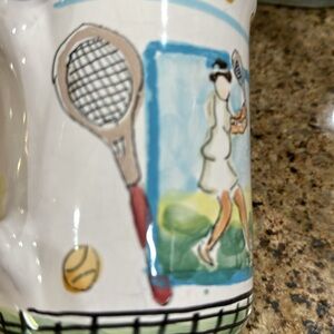 Very unique, oversized hand painted tennis mug. No chips or cracks. Perfect gift for a tennis enthusiast