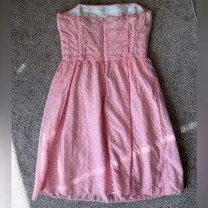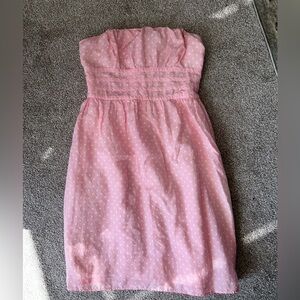Vintage LILLY PULITZER Womens size 8 Pink Polka Dot Silk Cotton Strapless Lined Dress