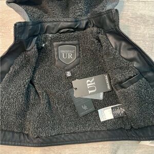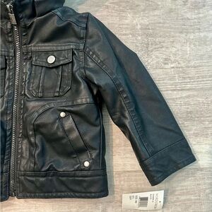 Toddler Boys Black Faux Leather and fleece lined Jacket NWT. Zip closure with removable hood. Great quality!