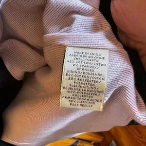 Bought a very long time ago at Anthropologie. Lined. Belt built in with gold clasp.