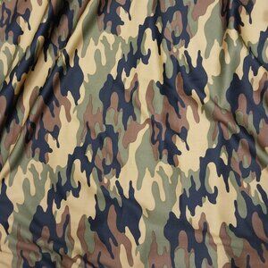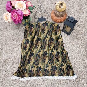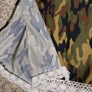 3039 Size XL Shawl Vest In Green and Black Camouflage With Lace Trim. Pit to pit 30" length 32".
