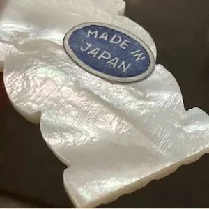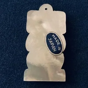 Made in Japan midcentury mother of pearl charm / pendant. It was hard to capture its lovely iridescence - see last two pics. 1.5” tall x .75” wide.