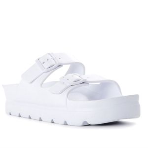 #368 New Women's Flatform Platform Buckle Sandals White Pool Slides Shoes 11 W