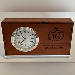 The BILLY GRAHAM Library 10 Year Anniversary Leather Bound Clock COLLECTIBLE