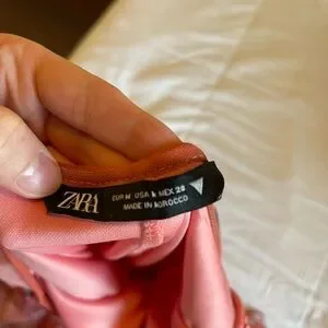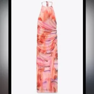 Zara Pink Tie Dye Mesh Halter Ruched Bodycon Midi Dress