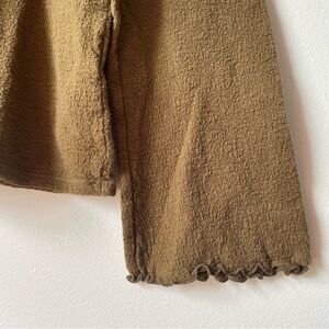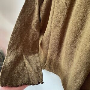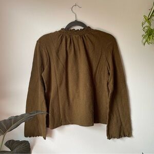 ♡ Army green long sleeve mock turtleneck blouse with sweet ruffled edges on the sleeves and collar. Super cute tucked into a denim skirt! Made of 100% cotton. Brand is Madewell Texture & Thread, size medium and fits true to size. Gently worn ♡