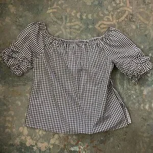 Song Of Style Gingham Top Black White Check Puff Sleeves Boho Off Shoulder XL
