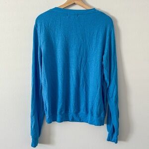 Wildfox Turquoise blue long sleeve soft thin sweater in size large. Style of sweater is baggy beach jumper deep V. The color is no longer available online. Made in Los Angeles, USA.