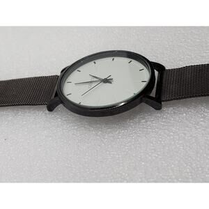 Simple Low Profile Black White Clean Dial Milanese Mesh Gunmetal Thin Band Watch