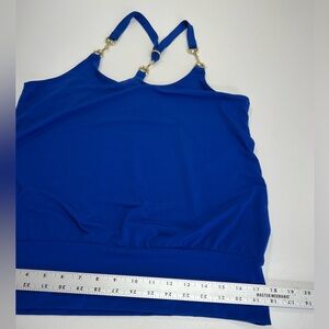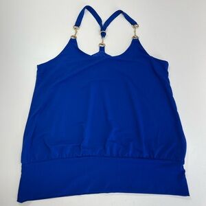 Boston Proper Hardware Detail Blouson Knit Top Deep Ocean Blue NEW Size Small