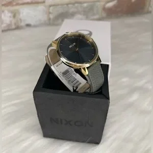 Nixon Kensington Leather Light Gold/Charcoal Casual Designer Women's Watch