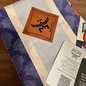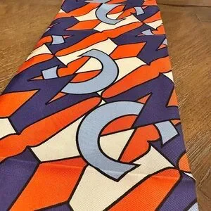 Double-sided organic Italian silk scarf with seasonal monogram print and jacquard stripe motif