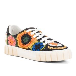 LAST CHANCE Black Artisanal Flower Platform Crochet Sneaker