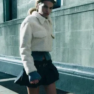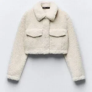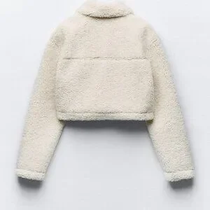 ZARA Women's Cropped Faux Shearing Jacket(Ecru, US XL /EUR XL)