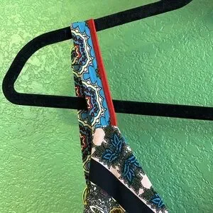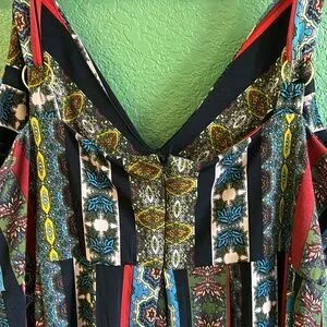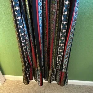 Full length dress with ruffle at hem. Colorful and flattering. Just too long for me.