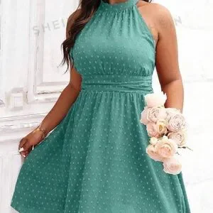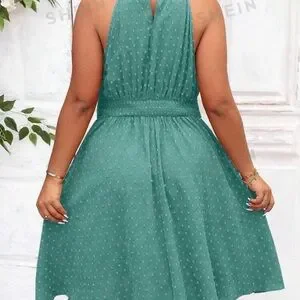 SHEIN Privé Plus Size Women'S Waist Cinched Halter Neck Sleeveless Dress