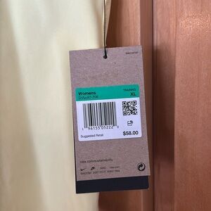 Beautiful sunshine, lemon yellow athletic top brand new with tags. Purchased from the Nike store, but it’s too far away to return for me. Just a little bit too small on me. Incredible technology of dry fit with built-in bra with Nike symbol.