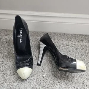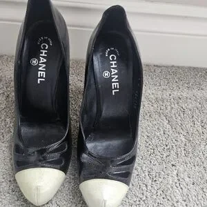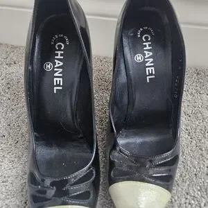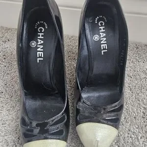 Pre loved authentic chanel comps with a light stain on toe that can be dyed and few scuffs on the side, but otherwise in awesome condition comes with COA