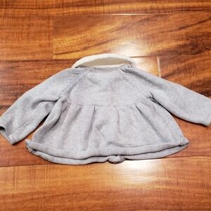 Janie and Jack 3-6 months gray sweater with faux fur collar. Front button enclosure. Matching sweater pants are ivory/gray/red fair isle. Elastic waistband. Bow accent on front. Also included is matching bunny bodysuit with ruffle sleeves. Snap enclosure on back and between legs. Sweater set and bodysuit are all in excellent condition, washed with gentle, unscented detergent. Complete the look with matching fair Isle sweater hat (NWOT) and fsir Isle socks (NWT). 2014 Bundle of Joy line. Pet and smoke free home.